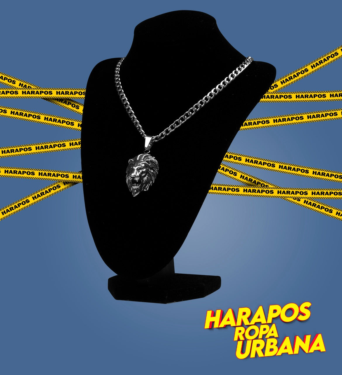 Cadena de acero plateada dije leon