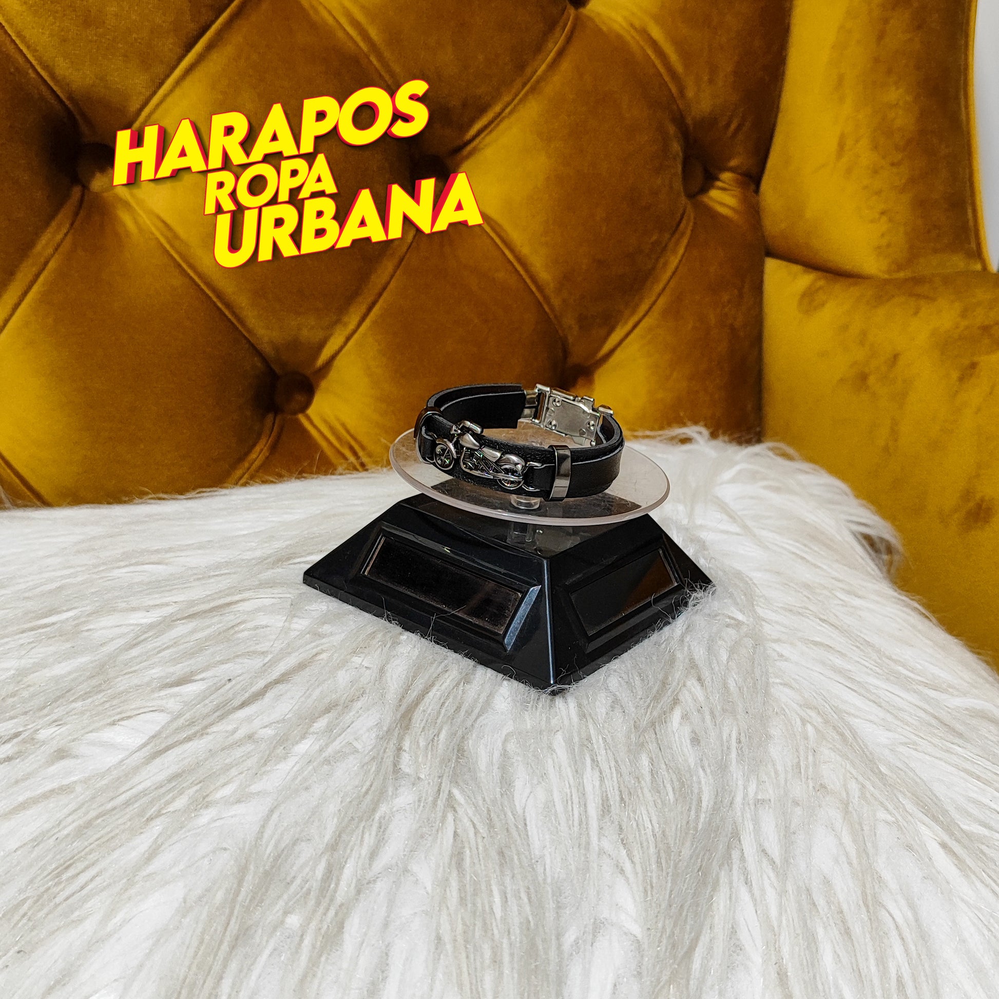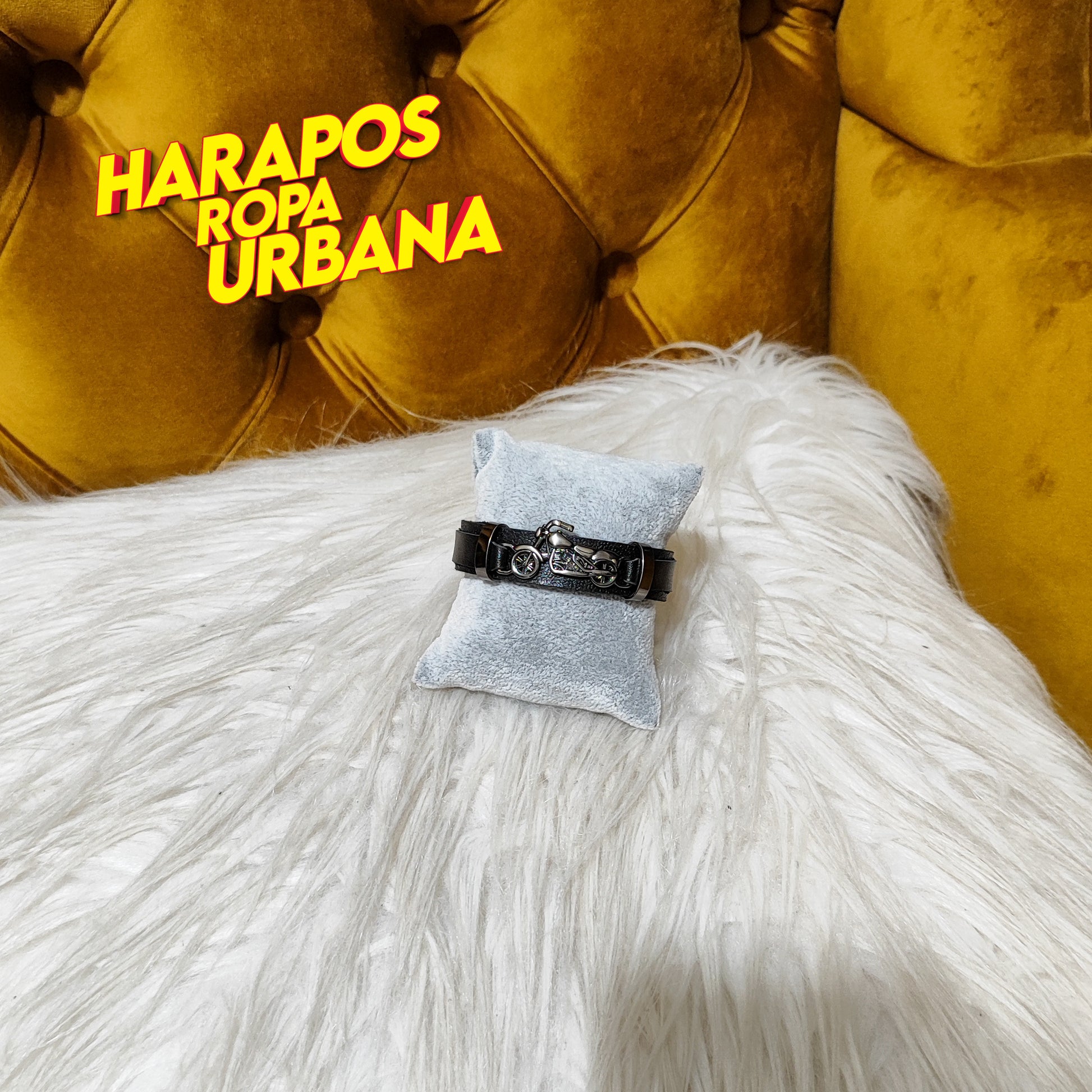 Manilla negra de cuero con diseño de moto