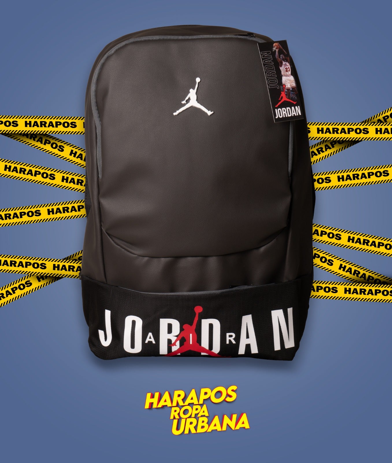 Mochila jordan cuero plomo/negro logo blanco