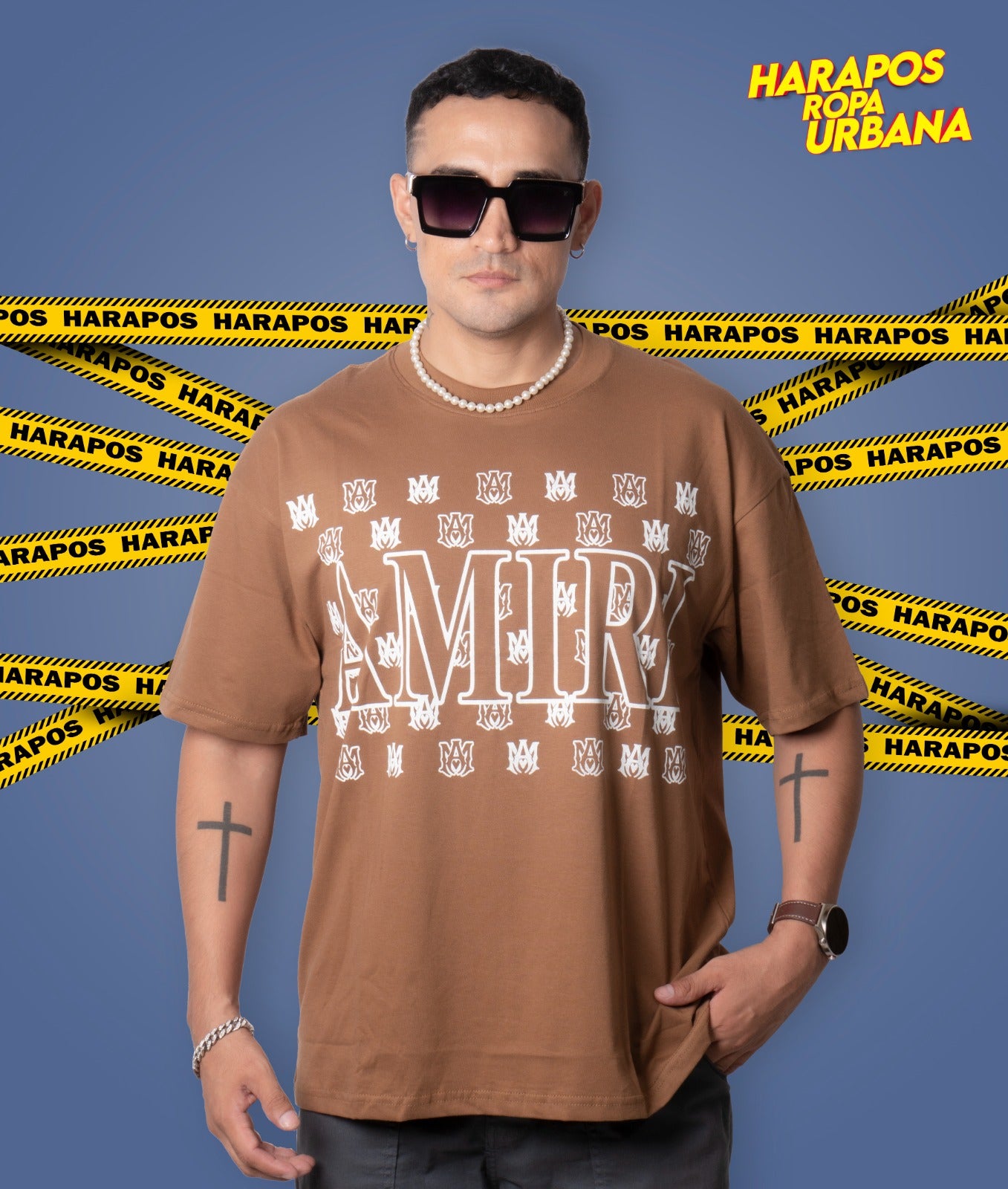 Polera amiri oversize cafe detalles varios pequeños